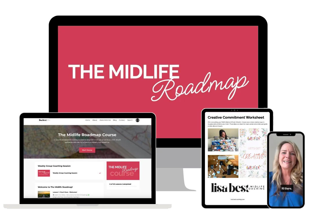A 10-week course where I'll guide you through navigating this exciting season of life. Through a combination of 1:1 and group coaching, a private members-only community, and exercises designed specifically for midlife women, you'll explore 5 key areas to create a life that truly aligns with who you are and who you want to become.